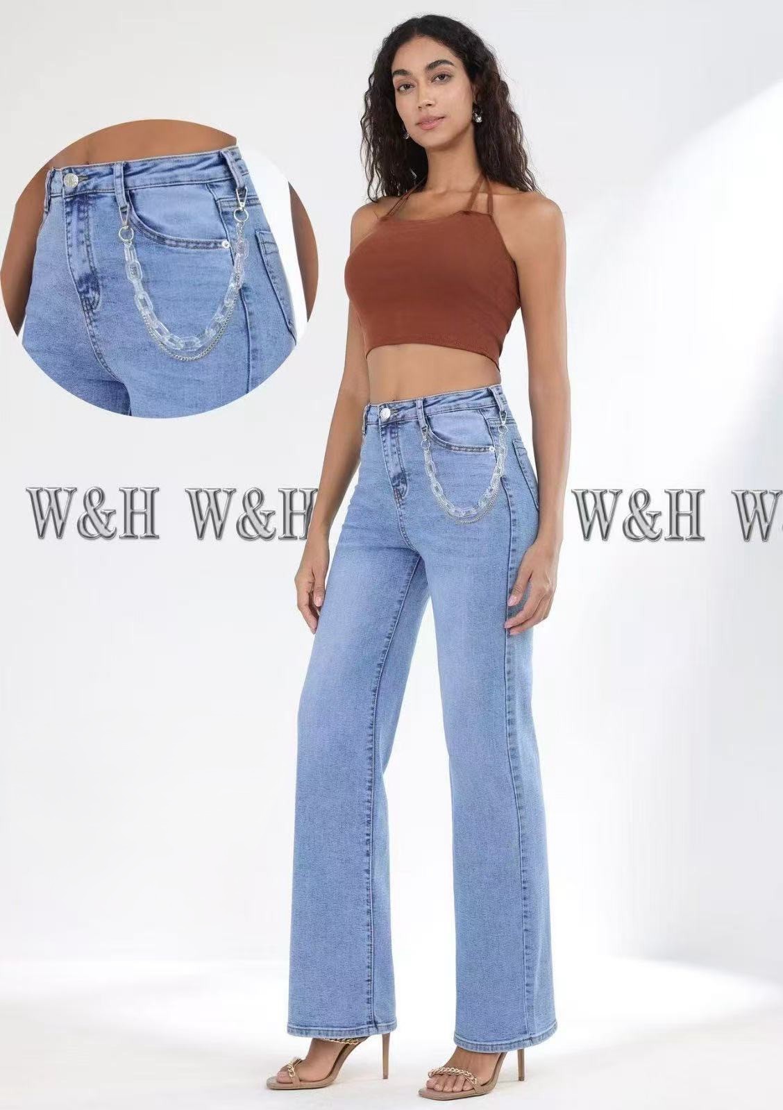 W&H platūs moteriški džinsai su papuošalu