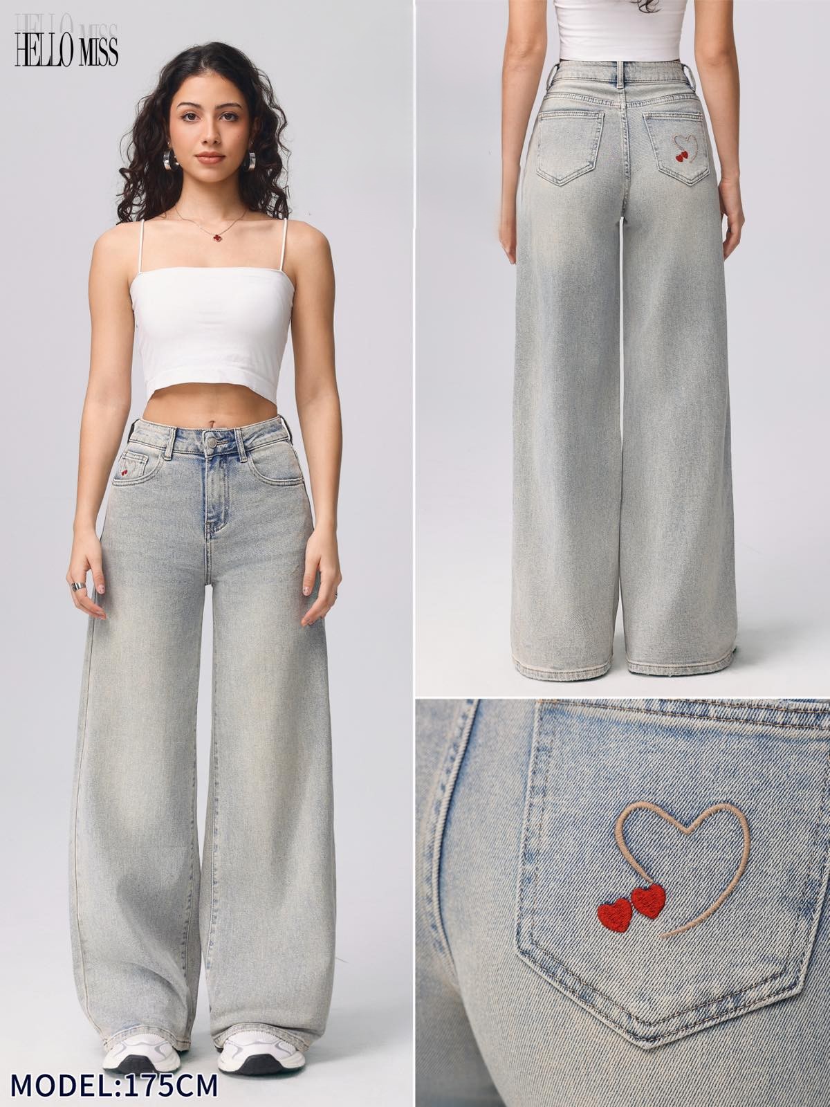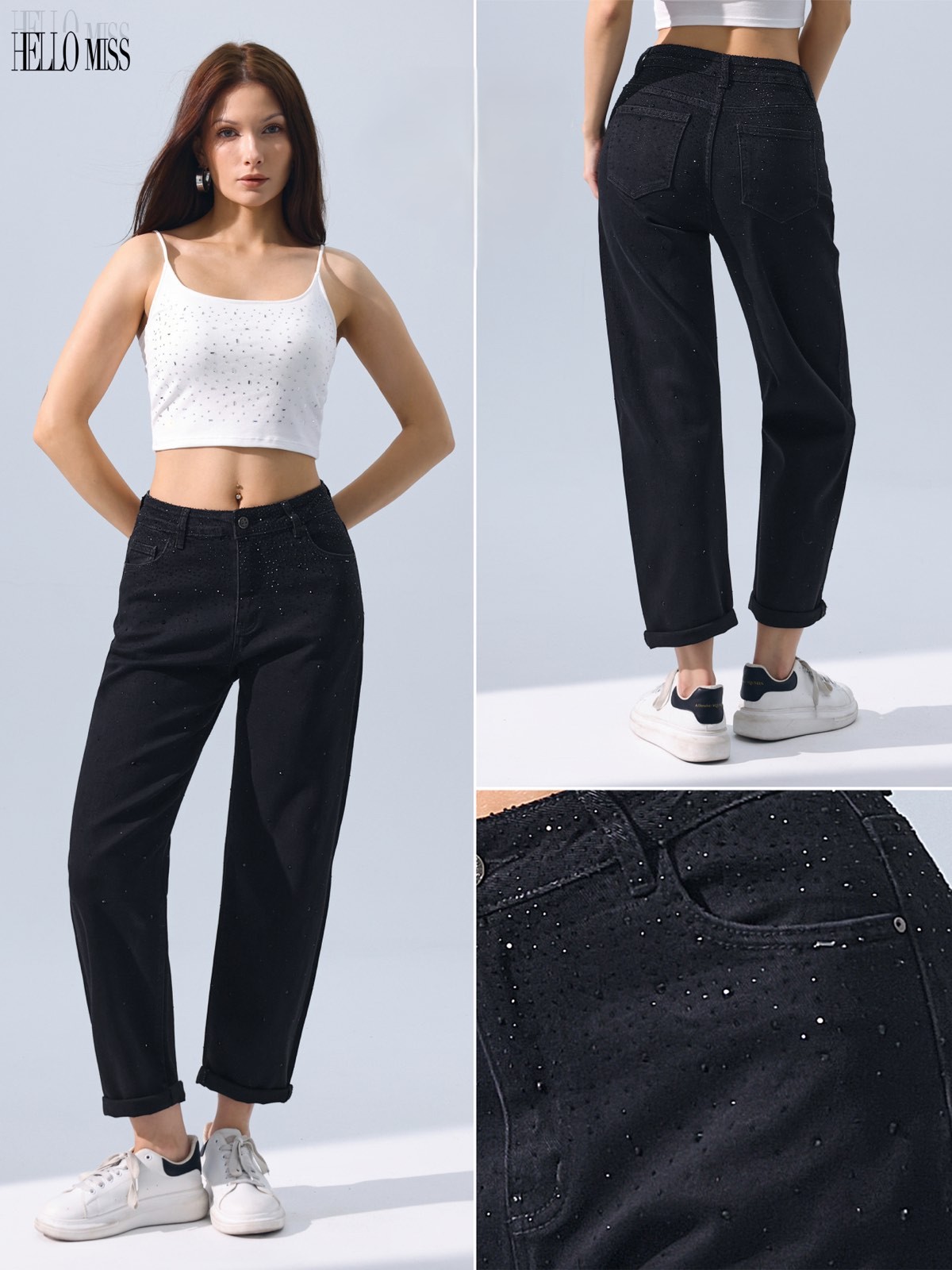 HELLO MISS BALLON moteriški džinsai su blizgučiais